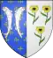 Parti : au 1er d'or aux trois abeilles de sable, au 2e d'azur semé de billettes d'or aux deux goujons adossés du même brochant sur le tout, le tout sommé d'un chef d'azur semé de quartefeuilles d'or. |