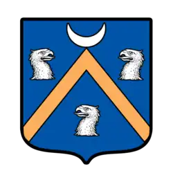 De... au chevron de... sommé d'un croissant de... accompagné de trois têtes d'aigle arrachées, les deux premières affrontées.