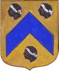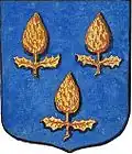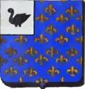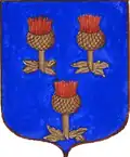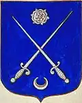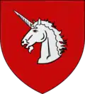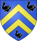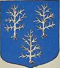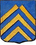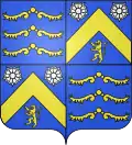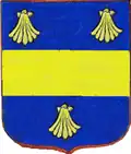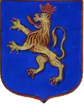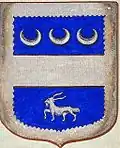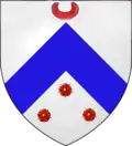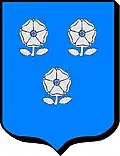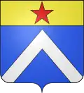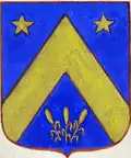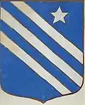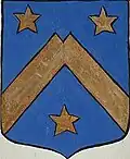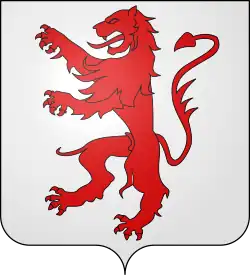 D'azur au lion d'argent ; au chef d'or, chargé de trois étoiles de gueules.[16],[17] |