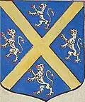 D'azur au sautoir d'or, accompagné de quatre lionceaux, armés & lampassés de gueules. |