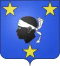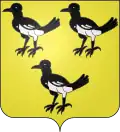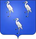 D'azur à un vol d'argent, surmonté de deux étoiles d'or. |