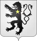 D'argent au lion de sable, la queue fourchée passée en sautoir, chargé d'une étoile d'or sur l'épaule. |