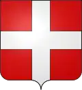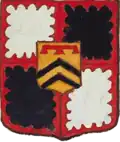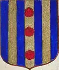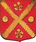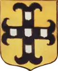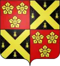 D'or à la croix treflée de sinople ; écartelé d'or au lion de gueules, sur le tout de gueules à deux pals d'or, chargés d'une fasce d'azur, fur chargée de trois losanges d'argent.