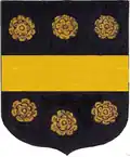 D'or au lion de sable armé & lampassé de gueules.[19] |