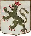 D'argent au lion de sable, armé, lampassé et couronné de gueules. |