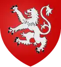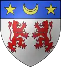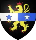 D'azur, au lion d'argent ; au chef d'or, chargé de trois étoiles de gueules.[33] |