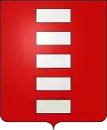 De gueules à cinq billettes couchées d'argent, rangées en pal.[3] |