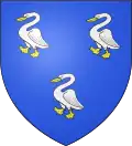 D'argent à trois aigles de gueules, becquées et membrées d'azur.[25]
