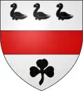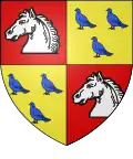 D'argent à la bande d'azur, chargée d'un besant d'or ; à la bordure du second, chargée de dix besants du troisième, dont cinq en chef, deux en flancs et trois en pointe.[3] |