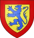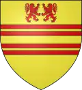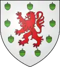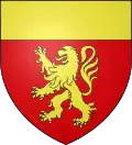 D'or, à la fasce échiquetée d’argent et de gueules de 3 tires, surmontée d’un lion naissant de gueules |