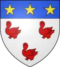 D'argent, à 3 merlettes de gueules ; au chef d’azur, chargé de 3 étoiles d’or