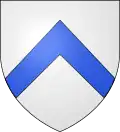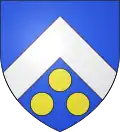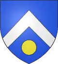 D'azur, au chevron d’argent, accompagné en pointe d’un besant d’or