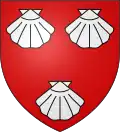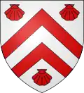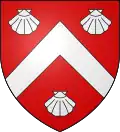 De gueules, au chevron d’argent, accompagné de trois coquilles du même |