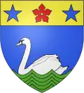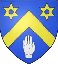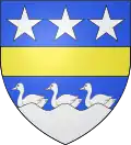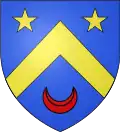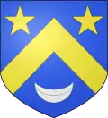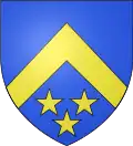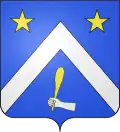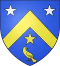 D'azur, au chevron d’or, accompagné en chef de 2 étoiles d’argent, et en pointe d'une colombe, la tête contournée d’or, surmontée d'une étoile du même |