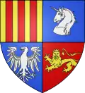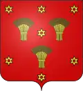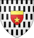 Burelé d'or et d'azur (de dix pièces), au chef du second, chargé de trois soleils du premier.[7],[15],[16] |