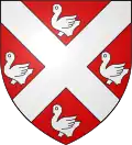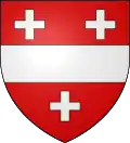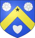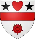 D'argent, au chevron de gueules, accompagné de 3 roses d’argent Il existe aussi : De gueules au chevron d’or, accompagné de 3 roses d’argent |
