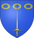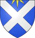 D'azur, au sautoir d’argent, accompagné de trois rayons de soleil d’or, issants du chef |