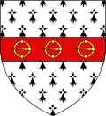 D'or, à 2 fasces de sinople, accompagnées de 7 merlettes de gueules en orle |