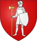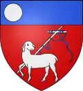 D'argent, au gonfanon d’azur, frangé de gueules.[10] |