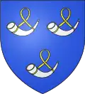 D'azur, à trois maillets d’argent, surmontés chacun d'une rose d’or