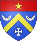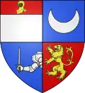 Coupé d’azur et de gueules, à la fasce d’argent sur le tout, soutenue d’un trèfle du même, et surmontée d’un croissant d’or