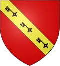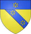 D'or à la bande d'azur chargée de deux molettes d'or, une en chef, une en pointe ; au chef d'azur chargé d'une molette d'or.[Rivoire 3] |