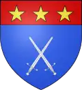 D'azur à deux épées hautes d'argent passées en sautoir, la pointe en haut ; au chef cousu de gueules chargé de trois étoiles d'or.[Rivoire 13] |