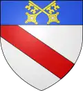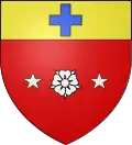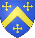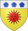 De gueules au chevron d'or accompagné de trois croisettes du même ; au chef d'argent chargé d'un soleil de gueules.[Rivoire 19] |