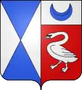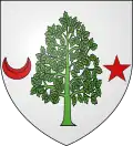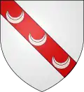 D'argent à trois croissants de gueules, deux en chef adossés, un en pointe renversé ; au chef d'azur chargé de deux étoiles d'or.[Rivoire 7] |