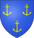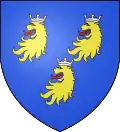 D'azur au chef d'or chargé de trois fleurs de lys d'azur.[Rivoire 18] |