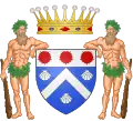 De gueules, semé de fleurs de lys d'or ; à la bande d'argent brochant sur le tout.[Rivoire 16],[CEA 1] Cimier : un lion passant surmonté d'un sauvage tenant à sa dextre un bâton noueux avec le mot « robur »[CEA 1],[Rivoire 16] Support : deux sauvages[CEA 1],[Rivoire 16]