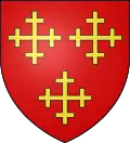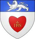 D'or au chef de gueules, chargé d'un lion issant d'or.[17] Alias de gueules au lion d'or issant d'une champagne de même.