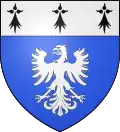 D'azur à la bande d'or chargée de trois alérions d'azur, alias de sable.[6] |