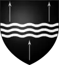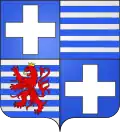 D'argent à deux fasces de sable ; au sautoir de gueules brochant sur le tout.[33] Alias fascé d'azur et d'argent, au lion brochant, armé, lampassé et couronné d'or. |