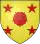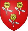 Écartelé d'or et d'azur, à trois quintefeuilles de gueules, deux en chef, une en pointe.[8] |