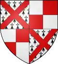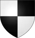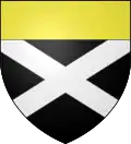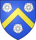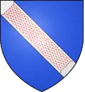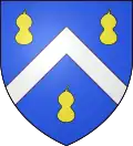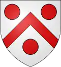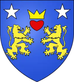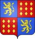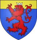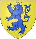 D'azur au chef d'or ; au lion de gueules, couronné d'argent, brochant sur le tout.[30] Alias le lion couronné de gueules.[31] Devise : « Oncques ne devies »[30] |