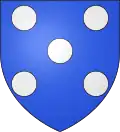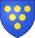 D'azur, à cinq besants alias annelets d'argent, 2, 1 et 2.[29] |