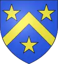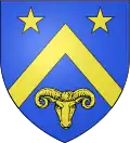 D'azur, au chevron, accompagné en chef de deux étoiles et en pointe d'un rencontre de bélier, le tout d'or.[13] |
