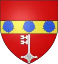 D'azur, à deux fasces d'or, accompagnées de six besants d'argent, trois en chef, deux en fasce et un en pointe.[10] |