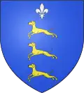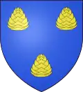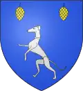 D'azur, au lévrier rampant d'argent, accompagné en chef de deux pommes de pin versées d'or.[22]