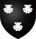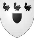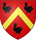 De gueules au chevron d'or accompagné de trois merlettes de sable.[24] Alias trois merlettes de même.[25] |