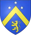 D'azur, au chevron d'or, accompagné en chef de trois étoiles mal ordonnées d'argent et en pointe d'un lion d'or.[26] |