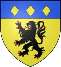 D'or, au lion de sable, lampassé et armé de gueules ; au chef d'azur, chargé de trois losanges d'or.[41] |