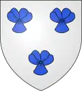 D'argent à trois fleurs de pensée d'azur, qui est de Babute.[16] Alias écartelé ; aux 2 et 3 palé d'argent et d'azur, au chevron de gueules brochant sur le tout, qui est de Fontenay. |