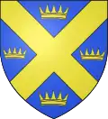 D'azur, au sautoir d'or, cantonné de quatre croisettes d'argent.[14] |
