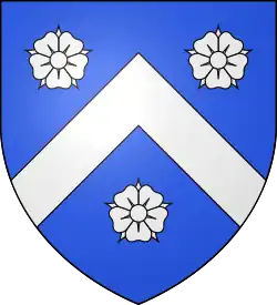 D'azur au chevron d'argent, accompagné de trois roses de même.[12]