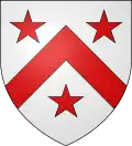 D'argent à trois fasces abaissées de gueules, surmontées de trois doubles deltas de sable entrelacés l'un dans l'autre.[3] Alias écartelé, aux 1 et 4 d'azur à trois étoiles d'or, aux 2 et 3 d'azur à trois besants alias annelets.[3] |