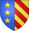 D'azur à trois étoiles d'or posées 2 et 1.[9] Alias à une fleur de lys d'or posée à dextre et deux demi-fleurs de lys du même l'une au-dessus de l'autre à senestre.[9]