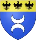 D'or à la fasce d'azur chargé d'un croissant accosté de deux étoiles à 5 raies du champ, accompagné au chef d'un léopard couronné et à la pointe d'un cerf, le tout de gueules.[45] |