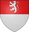 Parti, au 1 d'or au lion de sable, au 2 de gueules à la fasce d'argent |